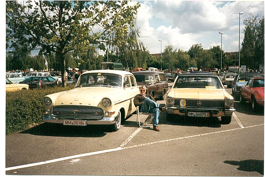 Das abgebildete Fahrzeug fand seinen Weg für nur wenig Geld in meine Fahrzeugsammlung. Trotzdem konnte ich mich an einer perfekten Innenausstattung, äußerlich sehr schönem Zustand und neuem Austauschmotor erfreuen. Dennoch waren eine Reihe von Restaurationsarbeiten notwendig, bevor der Diplomat in diesen perfekten Zustand versetzt war: Die inneren Radhäuser und der Beifahrerfußraum waren stark angegriffen und mußten erneuert werden, ebenso sämtliche unteren Türecken und einige weitere kleinere Roststellen. Radläufe, Schweller und Unterboden waren dank guter Hohlraumversiegelung und Wachsunterbodenschutz nahezu neuwertig. Neue Bremsscheiben, Beläge und Schläuche, eine Stoßecke sowie das eine oder andere Kleinteil waren noch nötig und eine Neulackierung - fast überflüssig - habe ich dem Diplomat dann auch noch spendiert. Die originalen 6" Ronal Felgen wichen der 7"-Ausführung samt neuer Michelin XAS -Bereifung mit Weißwand, eine Anhängerkupplung wurde montiert und seitdem kann auch wieder 'standesgemäß' als Oldtimergespann gefahren werden. So zum Jubiläumstreffen 1999 nach Rüsselsheim, wo der ebenfalls gelbe 57´er Kapitän huckepack mitgezogen wurde. Den B-Diplomat kennzeichnet